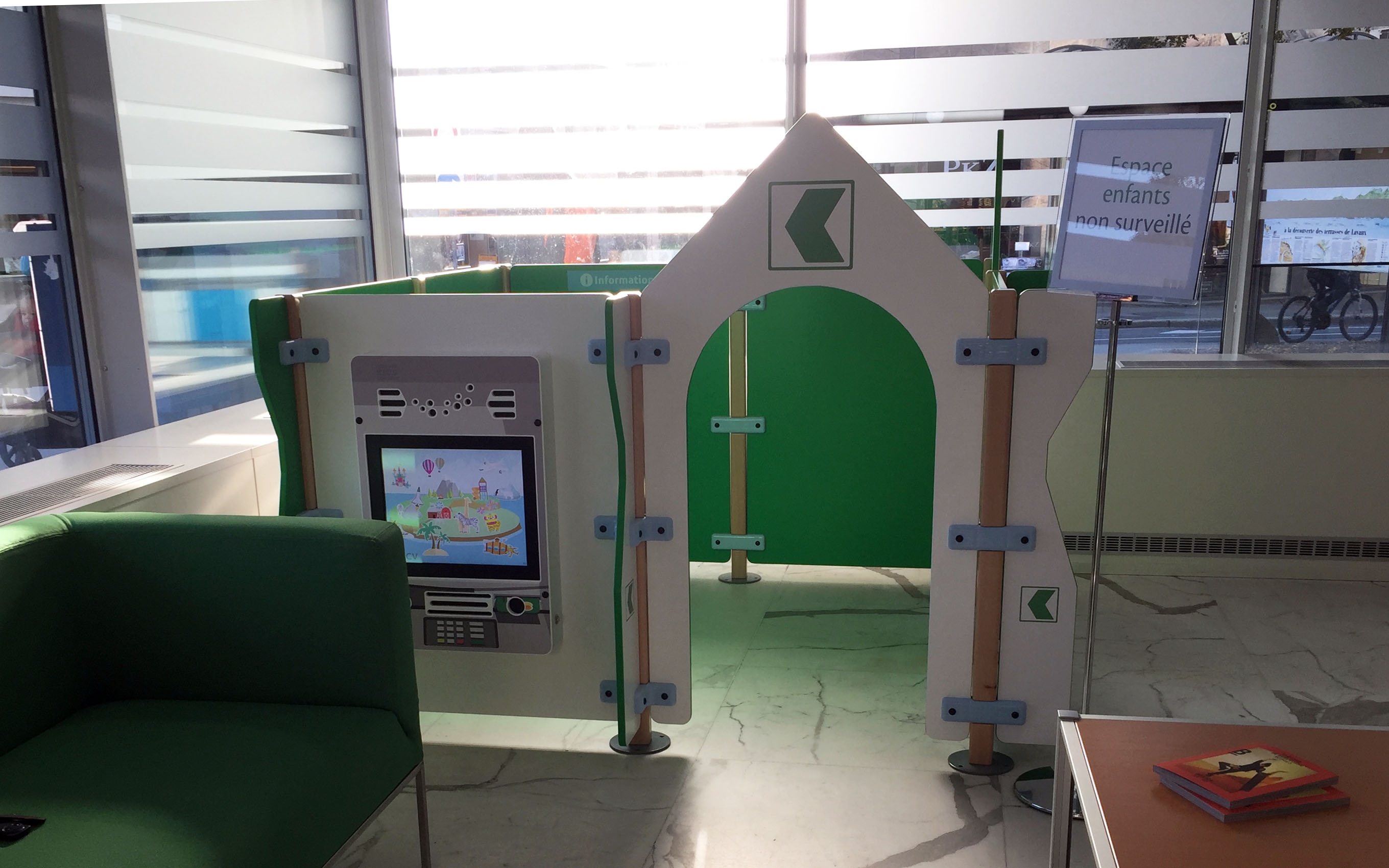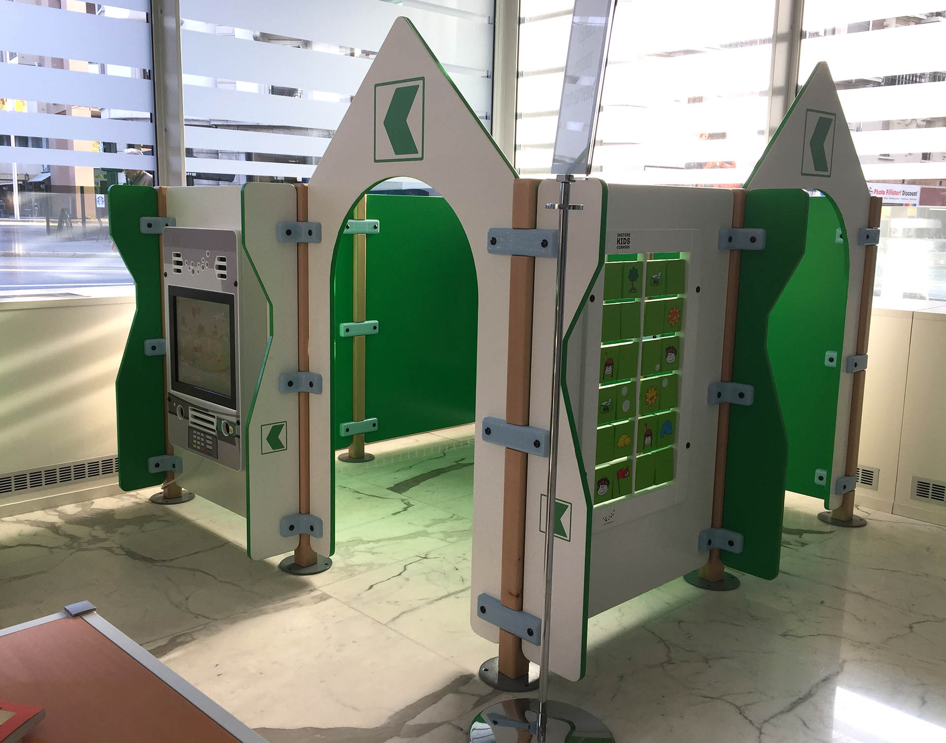 Mehrere Filialen bieten ihren jüngsten Besuchern bereits eine Spielecke mit einem finanziellen Thema an, beispielsweise ein Spielkonzept in Form eines Geldautomaten. Während die Kinder spielen, haben Eltern und Mitarbeiter mehr Ruhe und Zeit, um sich voll und ganz auf wichtige Bankangelegenheiten zu konzentrieren.