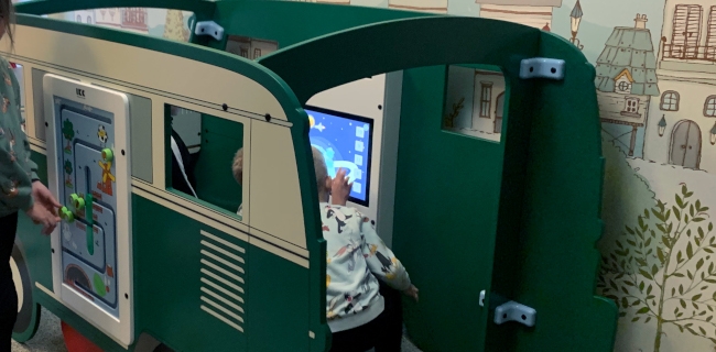 El IKC Van es un sistema de juego con forma de autobús. Dentro y sobre el autobús hay espacio para varios juegos, lo que proporciona valor de juego para varios niños al mismo tiempo. En este autobús hay instalados un juego de pared Apple Pie Factory y una videoconsola Delta de 17 pulgadas que contiene el software Arctic. Este software es adecuado para niños de todas las edades, gracias al cual se les anima a cuidar la naturaleza y el medio ambiente con 14 juegos y puzles divertidos y educativos. Este software también está instalado en la Delta de 21 pulgadas, que se monta en la pared. Por ejemplo, la fábrica de tartas de manzana es un juego de pared en el que los niños tienen que reunir los ingredientes adecuados para cocer una tarta de manzana en el horno; deslizando los botones, los ingredientes pueden moverse de un lado a otro.
