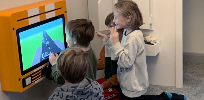 La mesa táctil Delta de 32 pulgadas también es adecuada para los niños mayores, ya que incluye 8 juegos diferentes. El software está diseñado para que varios niños puedan jugar juntos a un juego desde cada lado de la consola. Pueden coleccionar sushi, jugar al fútbol, pescar o jugar al baloncesto. Estos juegos desarrollan la agilidad y la coordinación ojo-mano, ¡pero también fomentan el juego en grupo! El volante Delta 21 también se instala para este grupo de edad, pues es adecuado para niños a partir de 8 años, así, girando el volante, los niños pueden hacer carreras de coches o coger huevos.