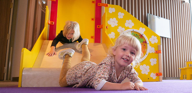 En los próximos años, Pathé quiere dotar a sus cines de estos rincones infantiles. Se pidió al departamento de diseño que diseñara el concepto de forma modular. Esto significa que el concepto de juego puede adaptarse a cualquier lugar. Cada concepto incluye una caseta de juegos en combinación con un tobogán. En el rincón de los niños también se pueden encontrar varios asientos para los padres, que también están hechos en el diseño corporativo.Crea esta loca experiencia también en tu organización.