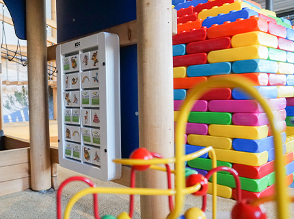 La zona de juegos cubierta tiene una gran estructura de escalada con un tobogán alto. Los niños mayores de 6+ años pueden pasar un buen rato aquí. Como esto era demasiado alto para los niños menores de 6 años, Landal Ouddorp Duin encontró a IKC para crear un área de juegos especial para ese grupo de edad. El área de juego original se hizo en un tema marítimo, para que coincida con el entorno del Landal Resort. La colección Arctic encaja perfectamente aquí. En consecuencia, se han instalado varios juegos de pared de esta colección. Los niños pueden sumergirse en su mundo de fantasía con el barco de juego All Aboard. La mesa de abalorios Beadstree también es imprescindible en un rincón de juegos para este grupo de edad. La mesa de cuentas estimula el desarrollo de la motricidad fina, ya que los niños tienen que guiar las cuentas a lo largo de los cables. También pueden construir todo tipo de construcciones con los Funblocks. Estos son grandes bloques de construcción de plástico y son fáciles de apilar.