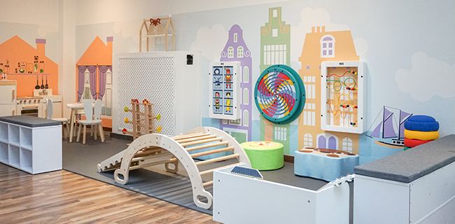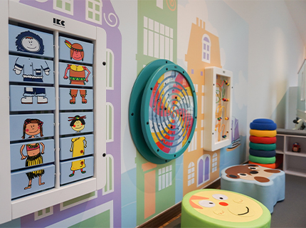 Sur le mur coloré, vous trouverez également des jeux de manipulation éducatifs, complétés par des modules Softplay pour se reposer.