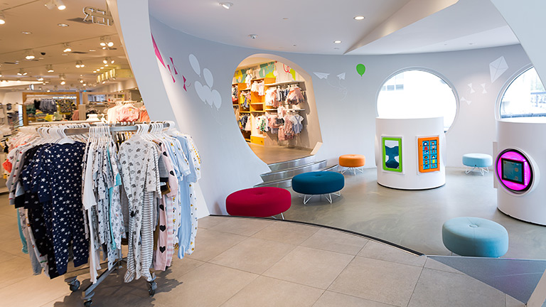 Az üzlet észreveszi a gyereksarok pozitív hatását, mivel a szülők így nyugodtabban vásárolhatnak anélkül, hogy a gyerekek unatkoznának. A gyerekek szépen játszanak ebben a modern gyereksarokban, miközben a szülők nyugodtan nézelődnek az üzletben. Az eredmény hosszabb "üzletben töltött idő" és nagyobb vásárlói megtartó erő.