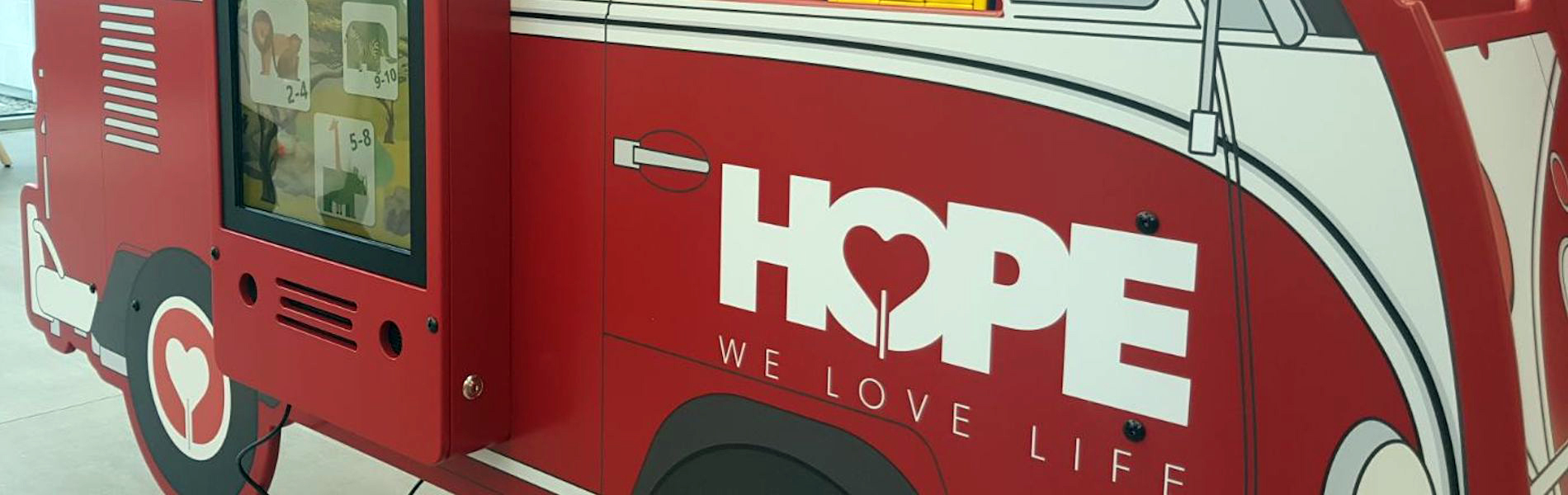 In collaborazione con HOPE Benefiet, HOPE su ruote è stata sviluppata per stimolare l'immaginazione dei bambini e portarli in un futuro luminoso. L'attrazione indipendente viene collocata plug-and-play presso le istituzioni sanitarie, dopo di che i bambini possono divertirsi dentro e intorno all'autobus attraverso giochi a muro e un sistema di gioco interattivo.