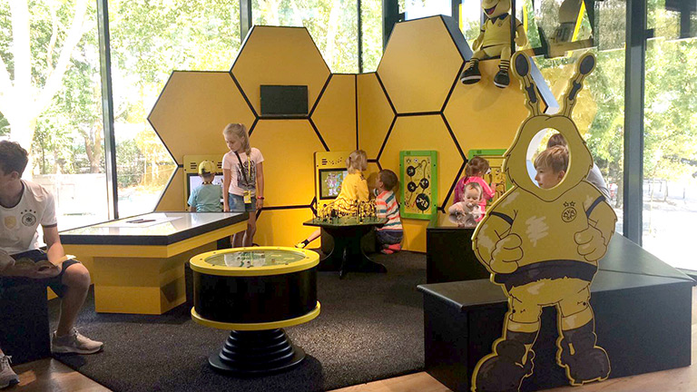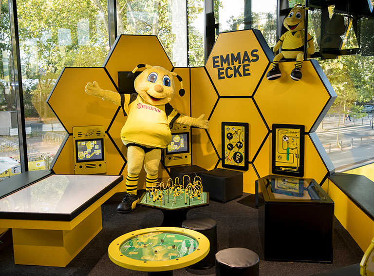 Il Borussia Dortmund è una delle più grandi squadre di calcio in Germania ed è ben nota per i suoi colori giallo e nero. Il club ha recentemente aggiunto un elemento di gioco al suo Fanwelt BvB con un angolo per bambini completamente personalizzato, chiamato Emma's Ecke.