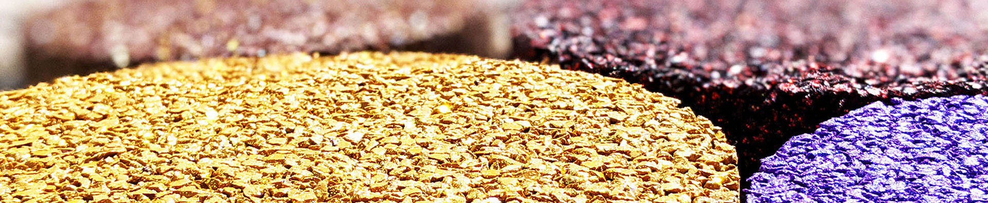 EPDMフロアの素材は微小のゴム粒子。だから細かいビーズのように多くの粒子を集めて模様や形を作ったりすることができます。企業ならば企業ロゴを粒子で作ったり、企業色であるコーポレートカラーで色を統一することもできます。