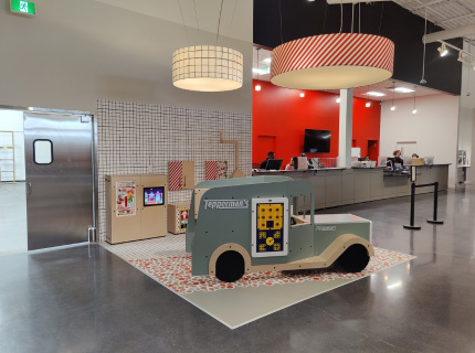 テッパーマンズのブランドとしての個性を生かし、IKCはキッズコーナーを店の雰囲気とシームレスに融合させるようデザインしました。特に、車の遊具にはテッパーマンズのロゴをあしらい、活気ある空間に親近感をプラスしました。
