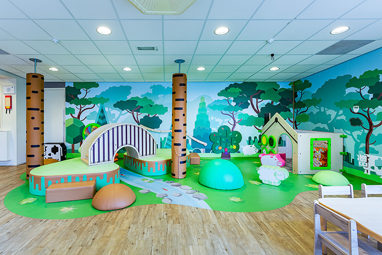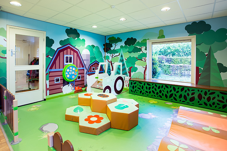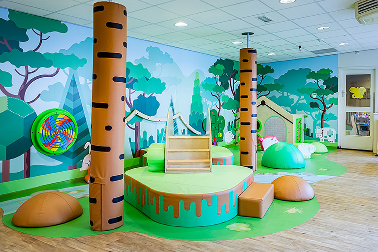 Kinderopvang Bloesem is omgetoverd tot een speelparadijs! Wij hebben in opdracht van Bloesem het buiten leven naar binnen gehaald. Op deze manier beleven de kinderen binnen het buiten gevoel. We hebben dit gedaan door bosrijke muurdecoraties te gebruiken en verschillende custom-made speelconcepten toe te voegen.