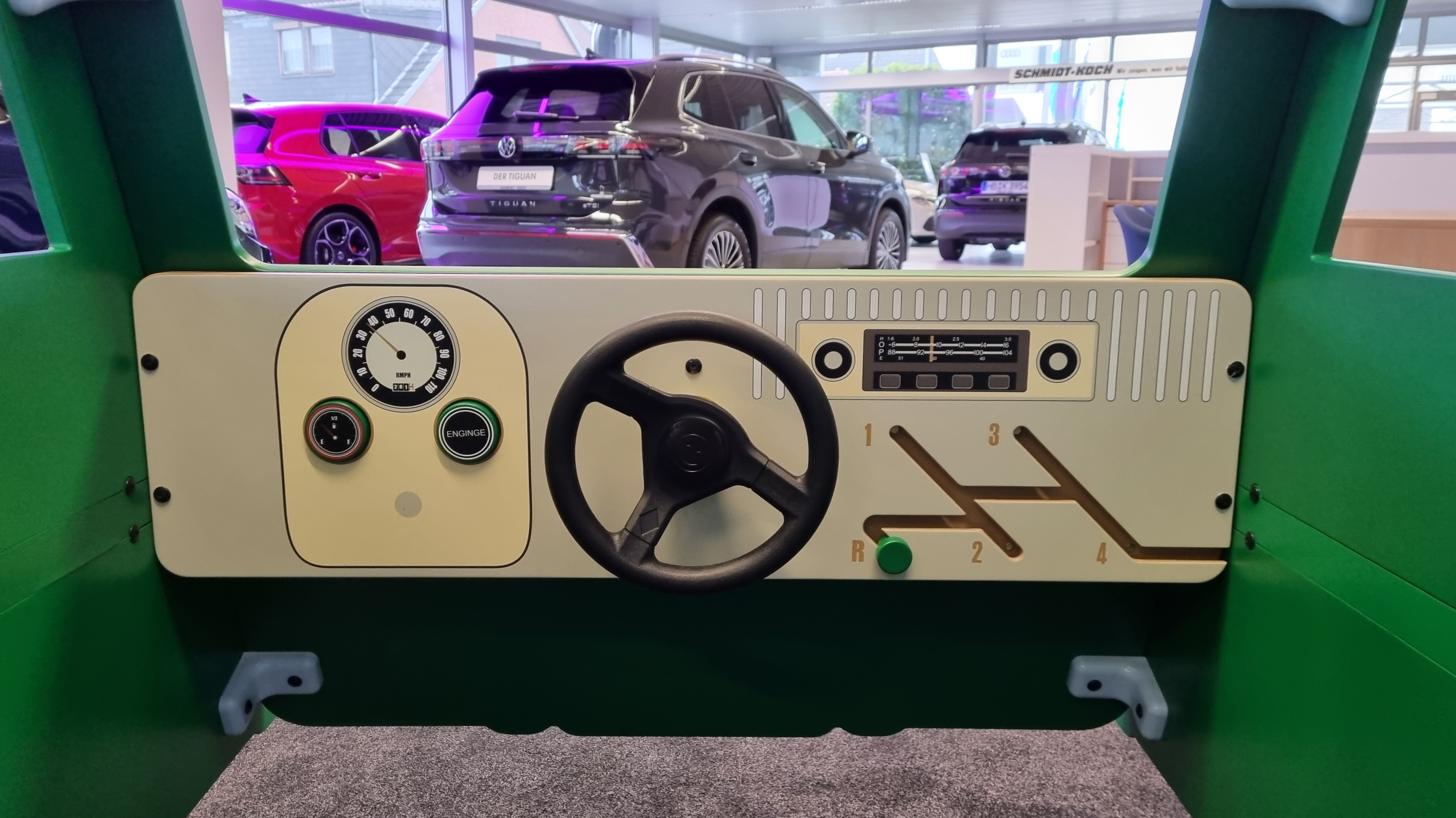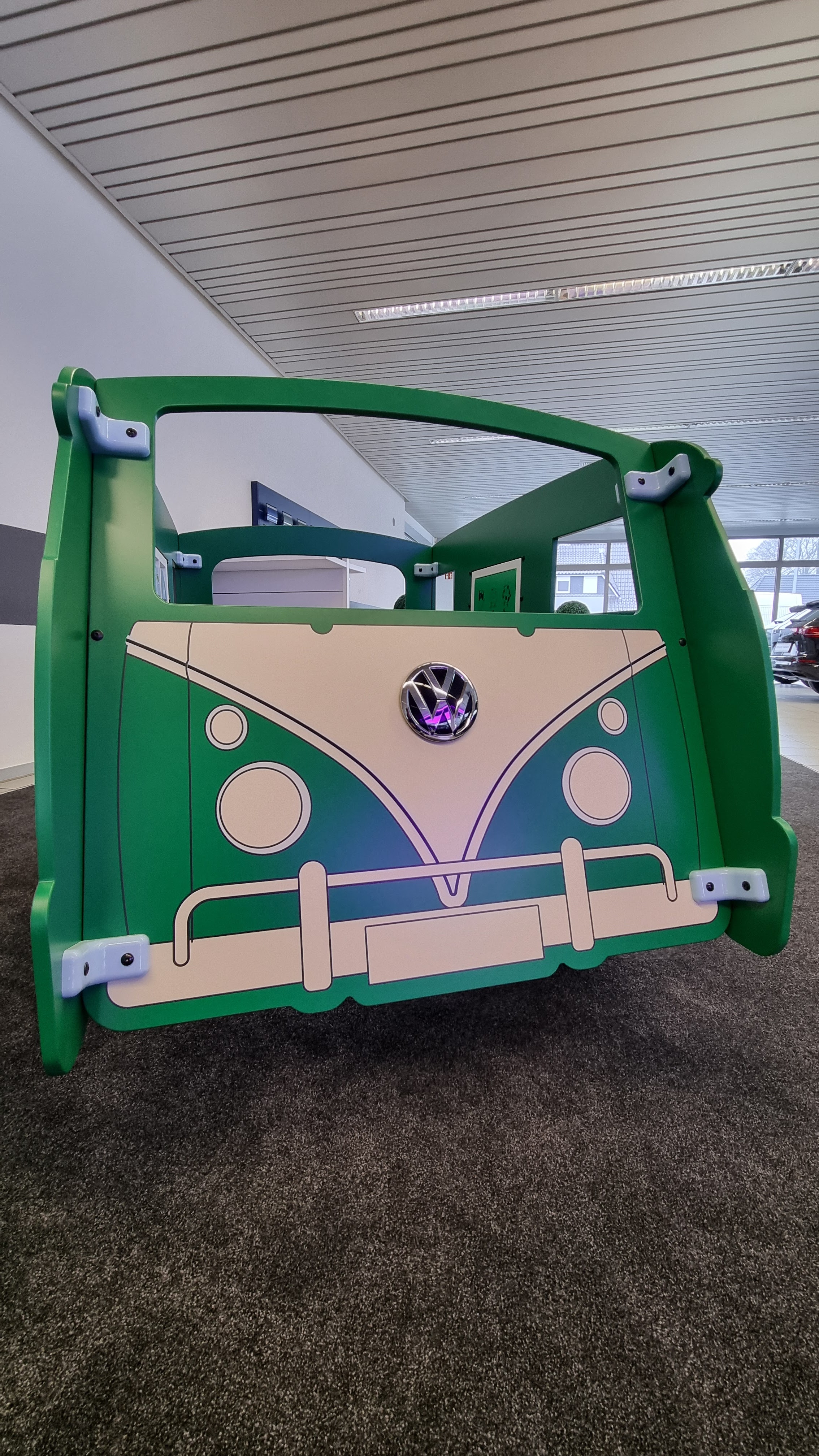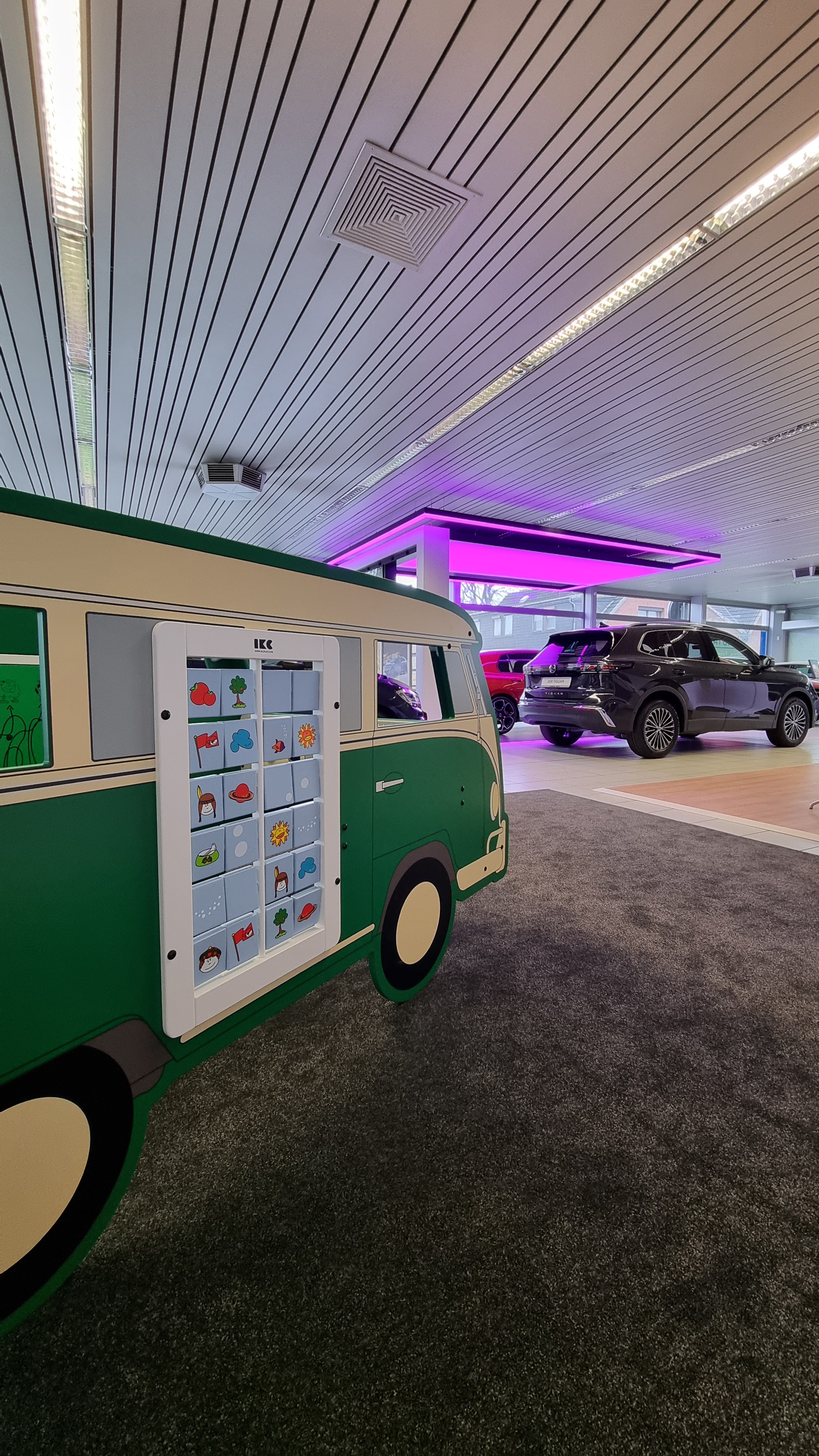 Midden in de showroom prijkt nu een op maat gemaakte IKC VW Van: een compacte speelhoek met interactieve elementen en iconisch design. Het speelsysteem sluit visueel aan op de inrichting van de showroom en is ontworpen met het oog op veiligheid, duurzaamheid en onderhoudsgemak. Terwijl ouders in gesprek zijn met een verkoopadviseur, kunnen kinderen zich veilig en zelfstandig vermaken. Dit zorgt er voor dat een bezoek aan de showroom een stuk aangenamer wordt, een win-win voor het gezin én het bedrijf.