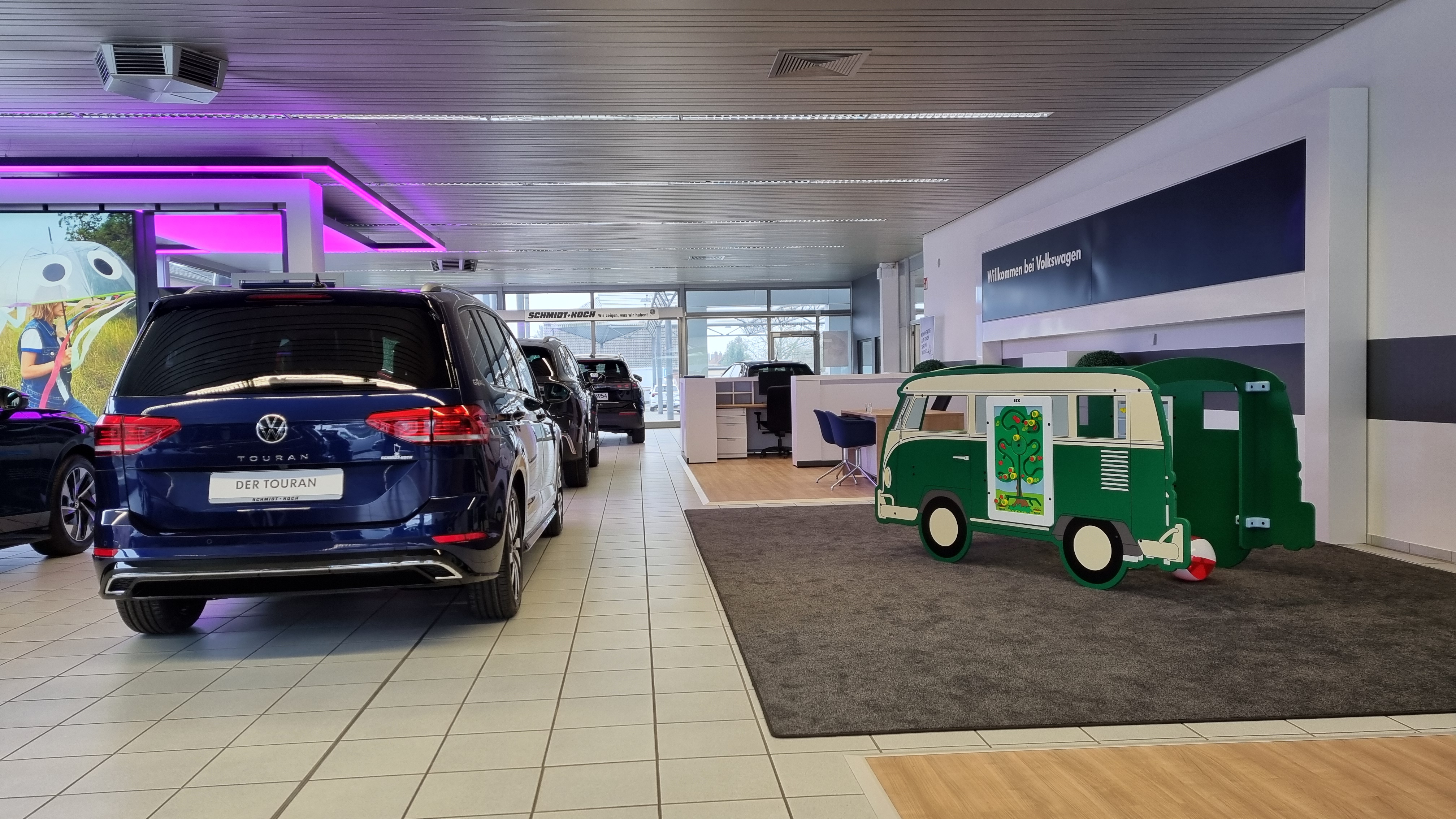 Bij Autohaus Schmidt + Koch in Duitsland staat klantbeleving centraal, ook voor de jongste bezoekers. Om gezinnen met kinderen een prettiger showroombezoek te bieden, koos het autobedrijf voor een speeloplossing van IKC die past binnen de stijl en sfeer van Volkswagen.