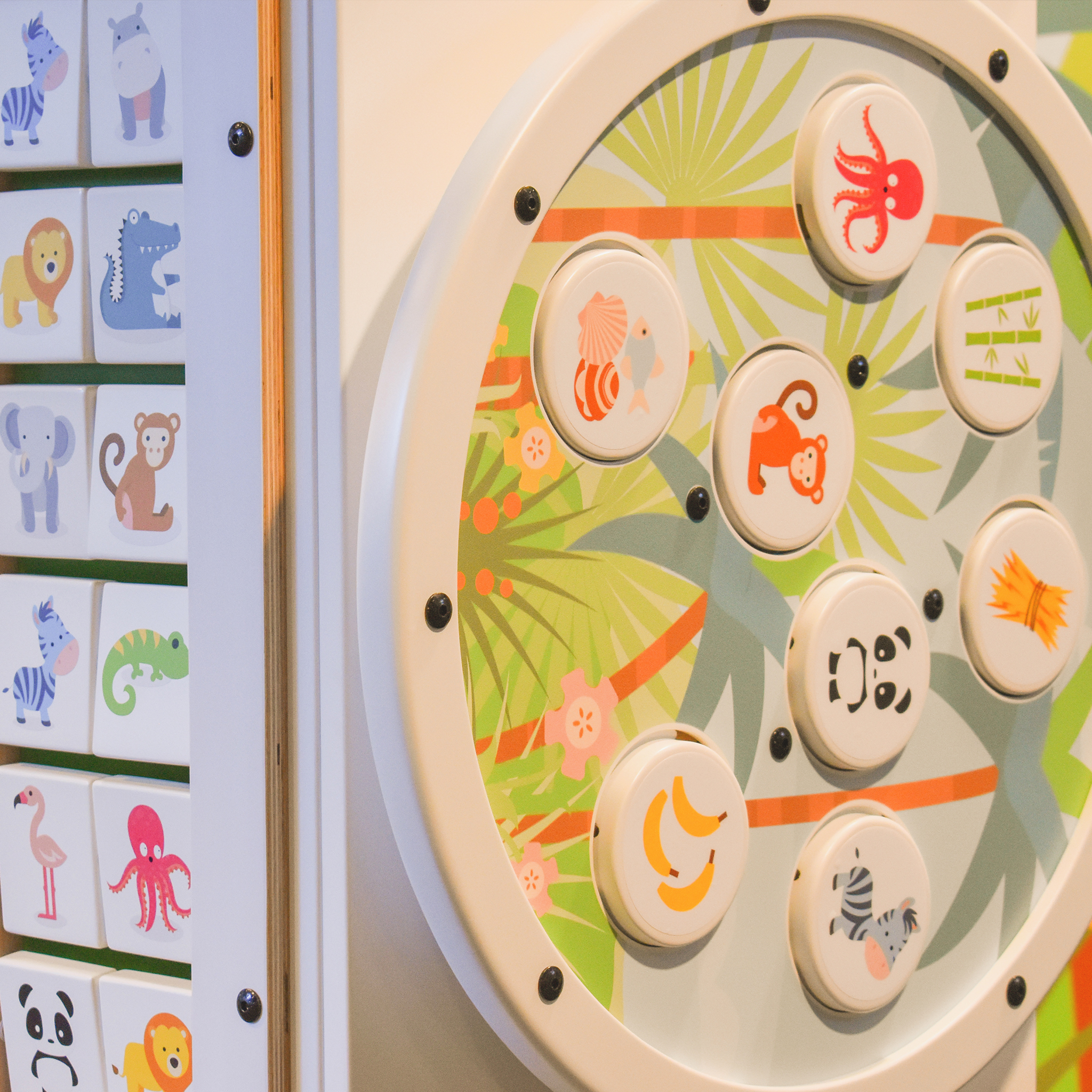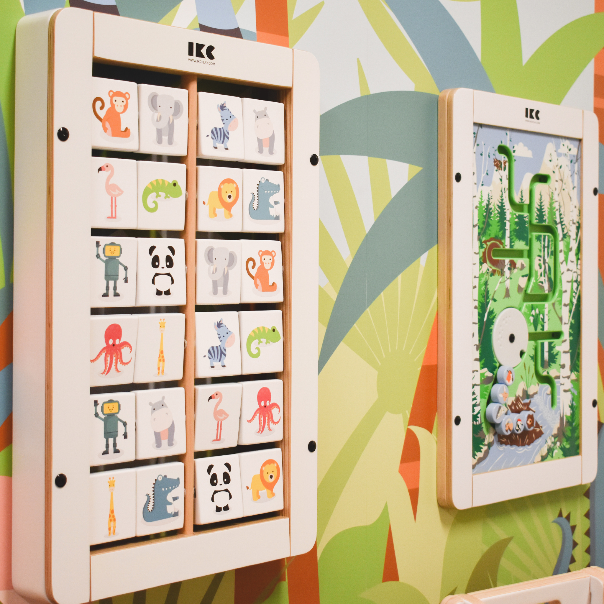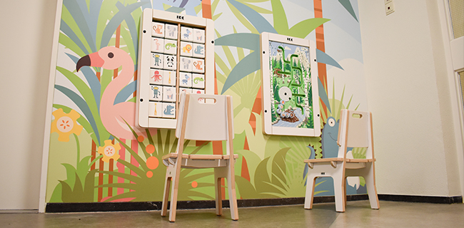 There is also a Four Fun play tower to discover, as well as various analogue, educative wall games with fun details such as pictures of animals and plants.
