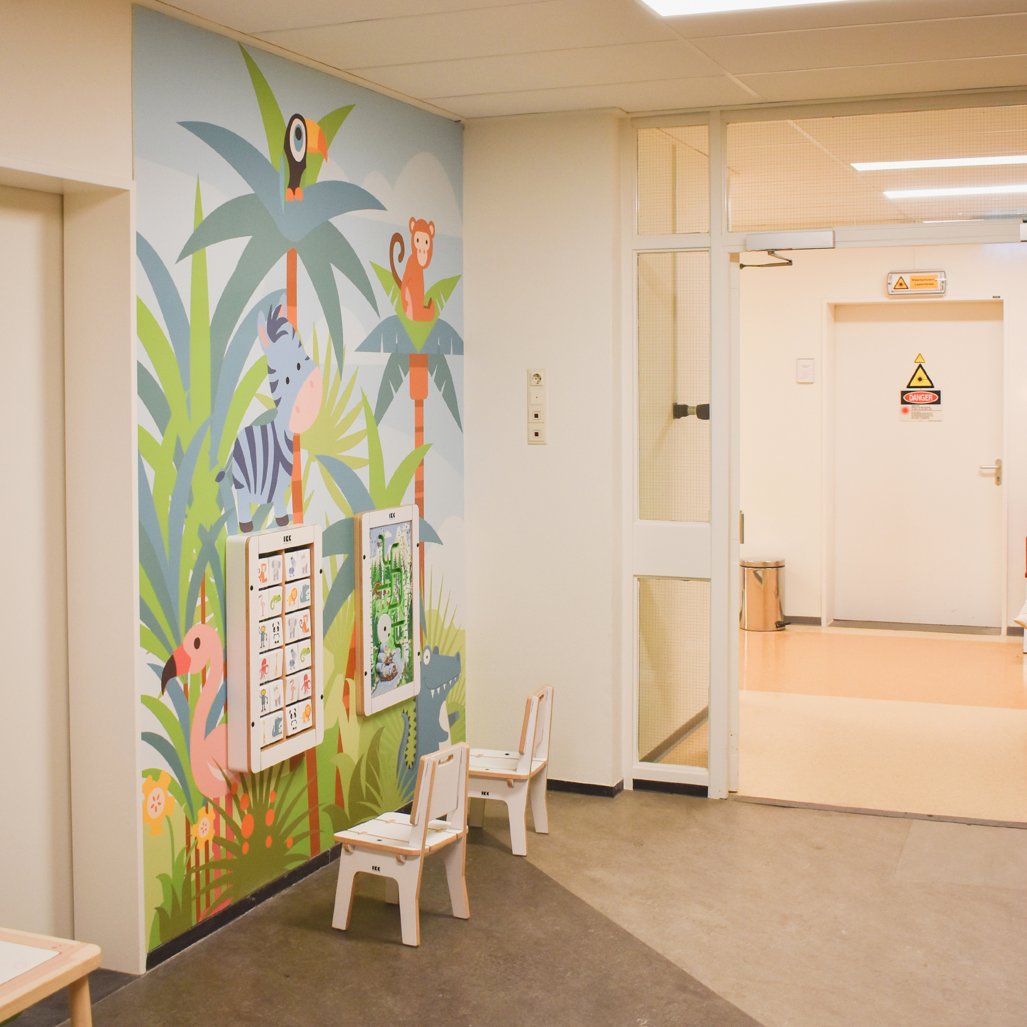 Thanks to the proceeds from a great fundraiser, the mascot can now also be found on brand new, colourful wall decorations spread across multiple departments in the Dutch cities of Sittard, Heerlen, Brunssum and Kerkrade! Zebra Zuydie can be spotted on these fun safari walls in the waiting rooms, surrounded by many more animal friends such as flamingos, giraffes, chameleons and toucans.