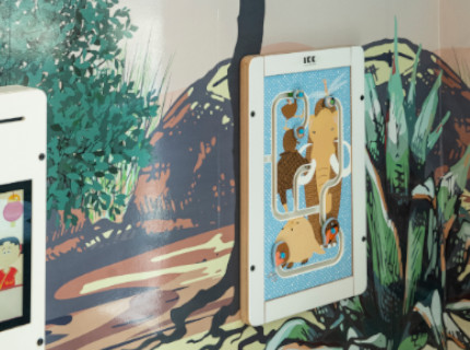 In the play area, there are various instructive wall games. The interactive play systems are also well represented. For example, our Delta 17 wall game computer and our interactive play table. Up to 4 children can play games together on the touchscreen table. There is also an area where children can participate in activities, this play area is furnished with our children's furniture. In short, a great play area for children and teenagers!