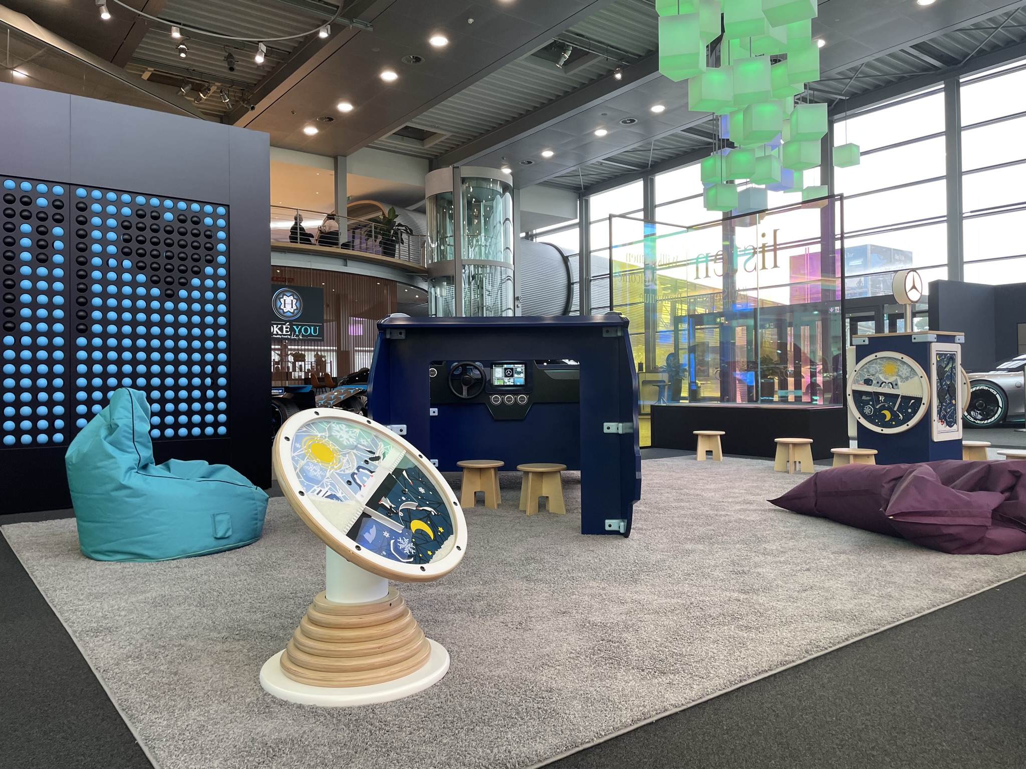 Welcome to the Mercedes-Benz Customer Center in Sindelfingen, where innovation, luxury, and experience come together. From the stylish reception area to the moment customers take delivery of their brand-new vehicle, everything here revolves around creating the perfect brand experience. With the addition of a brand-new children’s corner, Mercedes-Benz is now focusing fully on its youngest visitors as well. In collaboration with IKC, a playful, educational, and brand-aligned children’s environment has been created – a place where the experience is truly designed at child level.