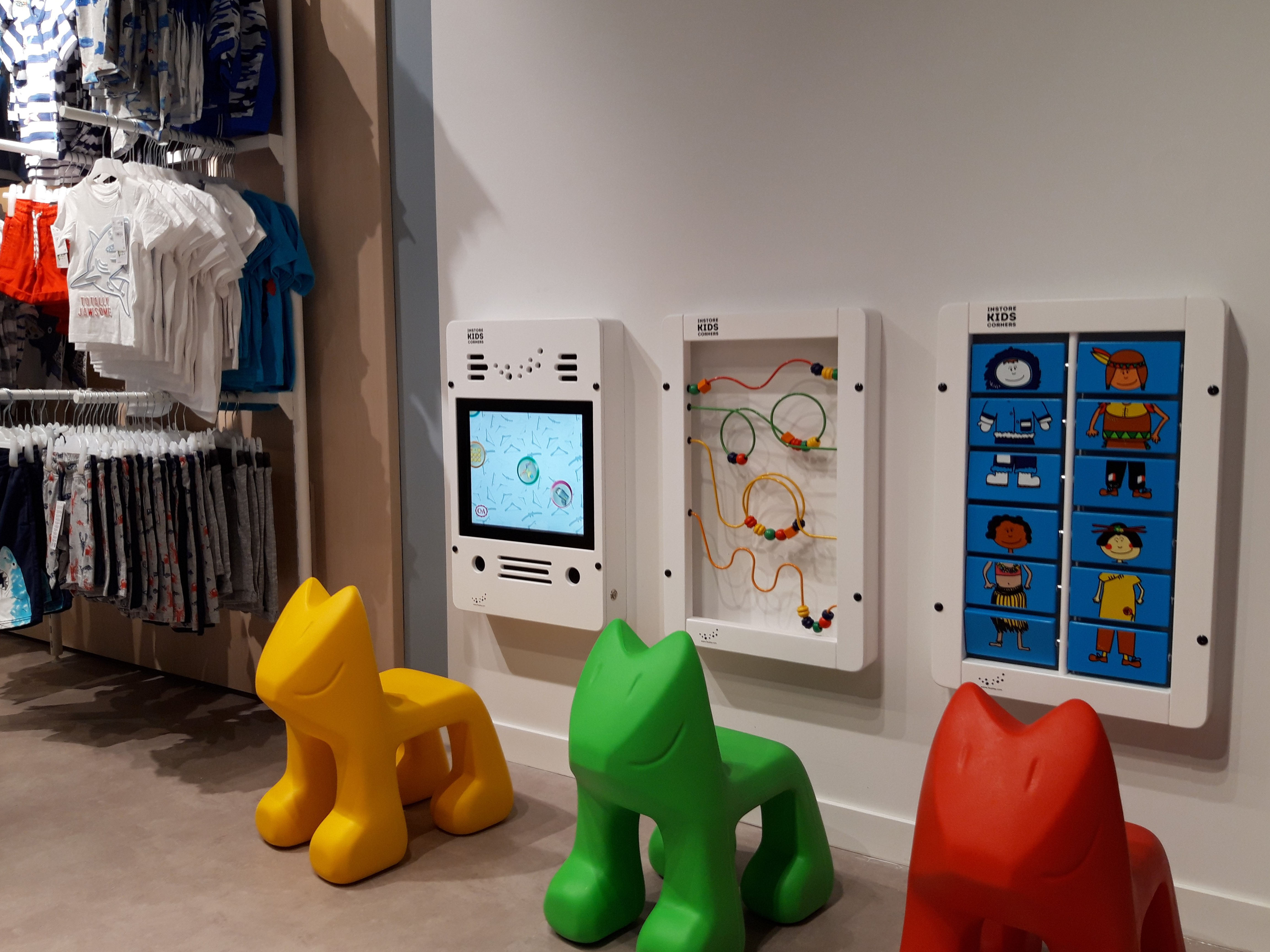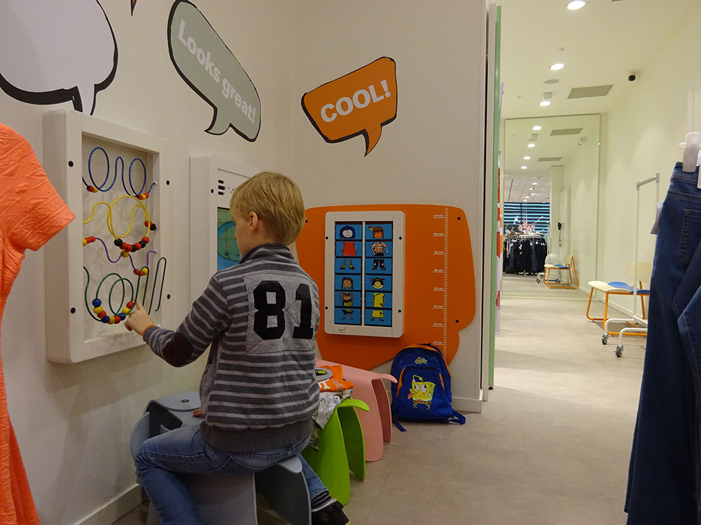 In a Retail establishment, every square metre of sales area counts. Therefore, we installed popular interactive play systems and wall games at dozens of C&A stores, which provide a great deal of fun on only one square metre. The play corners have a recognizable style, allowing children to find their place in the shop quickly, so that parents can shop in peace and quiet.