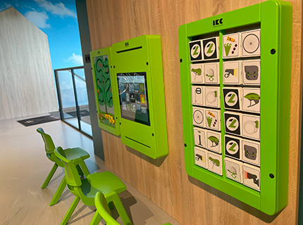 A custom Memory has been installed with the company logo on the back of the blocks. The blocks that the children can match show different bicycle-related products. This way, children also learn more about bicycle parts. A Delta 17 is placed in the middle. The menu also features the company logo in the centre. This also fits perfectly into the interior. With its green colour, the Sorting Tree matches Leijenhorst's colours perfectly. With this wall game, children learn to sort in a fun way.The motivation for the kids' corner