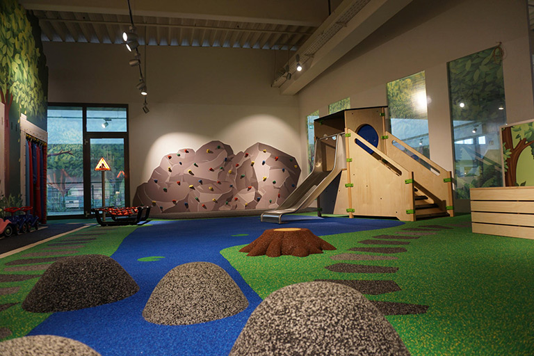 In the new concept from Möbel Hesse they thought it was important to add play value for children. They chose to turn different spaces into an indoor playground. Both the youngest visitors and the older children can now enjoy themselves with the interactive modules and classic wall games. In addition, there is enough room to move safely.