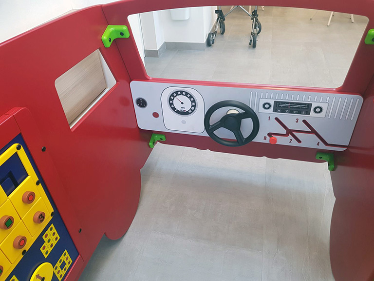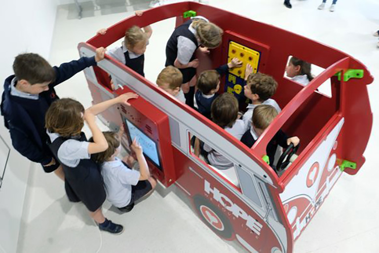 As crianças podem brincar com sistemas de jogo interativos, bem como vários jogos de parede. Ambos os conceitos de jogo são soluções de jogo independentes, completamente no estilo HOPE, mas naturalmente com a nossa qualidade IKC. No final de 2019 conseguimos deixar ainda mais locais felizes com uma Esperança sobre rodas. Veja a notícia aqui.