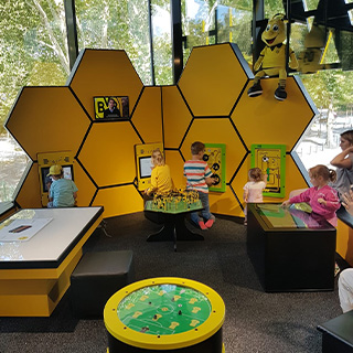 O canto infantil combina telas de toque interativas com módulos de jogo especialmente adaptados. As crianças podem jogar seu próprio jogo de futebol na mesa Touch de 32" ou se divertir brincando com os módulos exclusivos na parede.