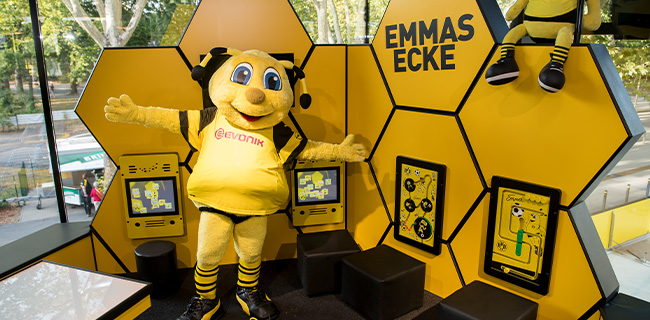 O Borussia Dortmund é um dos maiores clubes de futebol da Alemanha e é conhecido por suas cores amarela e preta. O clube recentemente adicionou valor de jogo ao seu BvB Fanwelt com um canto infantil totalmente adaptado chamado Emma's Ecke.