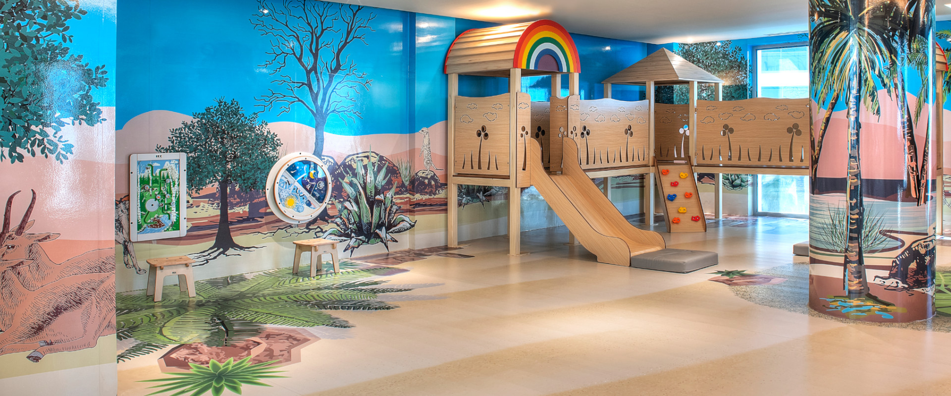Create an unforgettable experience for families with an IKC kids corner. Visitors expect more and more experience, a kids corner is the perfect addition for a positive visitor experience. Playing creates beautiful memories for a child and if the children are happy, so are the parents. By combining our knowledge and love of children at play, we create powerful products that transform any space into a child-friendly place. This is possible because of our wide range of play elements and the possibility to customise each module and each software. This can be done by adding the house style colours or incorporating your logo.